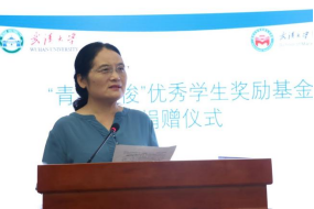 仪式伊始,校党委副书记赵雪梅代表武汉大学致辞。她代表学校向奖励基金的捐赠者丁俊萍教授表达了崇高敬意和衷心感谢,回顾了丁俊萍教授从风华正茂的青年教师、到两鬓斑白的老教授这41年来为教学科研不懈奋斗的历史,总结了党的十八大以来武汉大学在师德师风建设上的举措和成绩。习近平总书记在中共中央政治局就建设教育强国进行第五次集体学习时强调:必须“加强师德师风建设,引导广大教师坚定理想信念、陶冶道德情操、涵养扎实学识、勤修仁爱之心”。值此第39个教师节之际,校党委副书记赵雪梅也对广大教师提出了希望,希望“广大教师特别是青年教师都能以丁老师为榜样,以德立身、以德立学、以德施教,不断为强国建设、民族复兴作出武大人应有的贡献。”