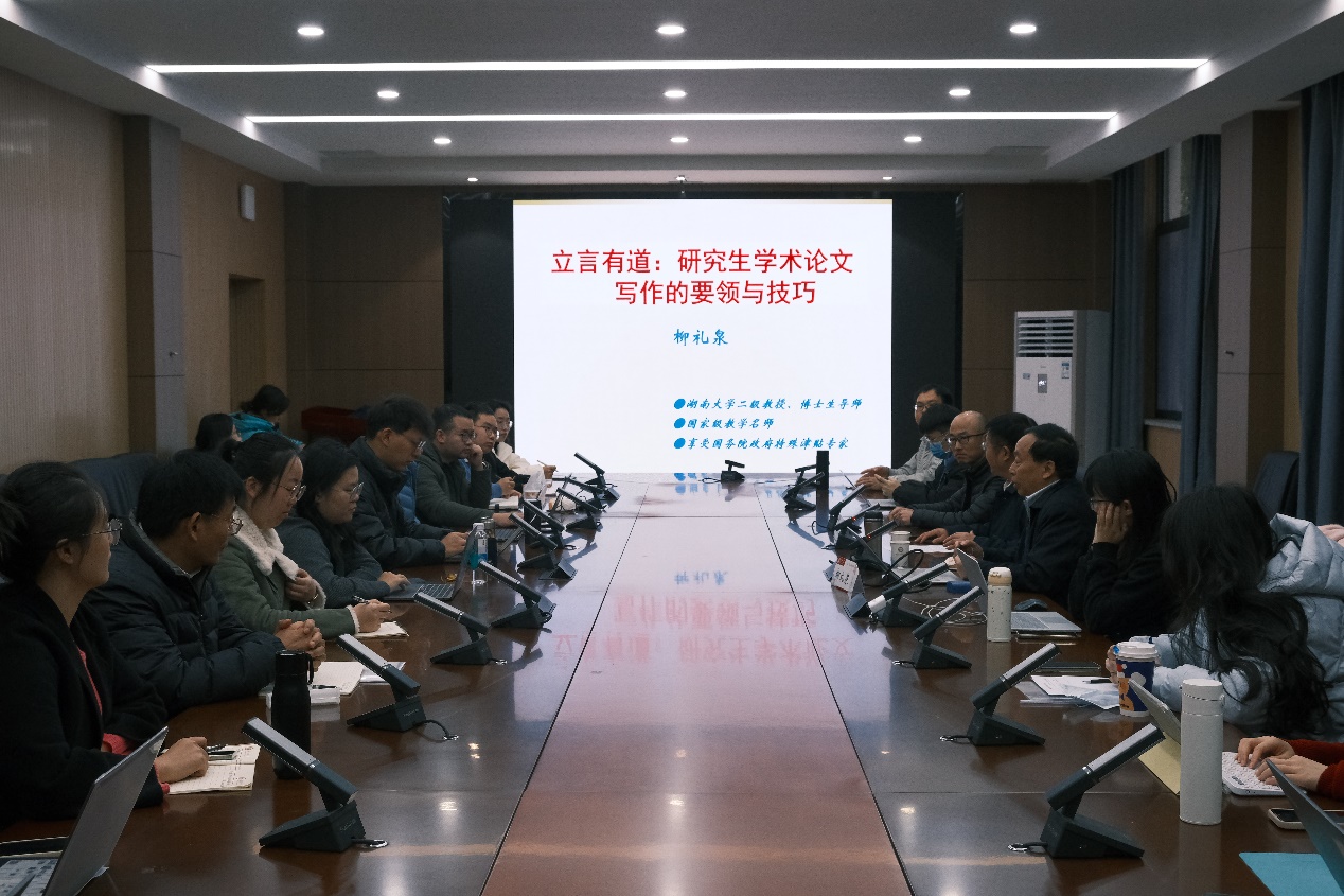 随后,柳教授主要从学术论文的基本内涵与主要特点、写作步骤与基本要求、写作规范与方法运用、特殊要求与技巧,以及如何增加学术论文投稿的命中率等方面,就"研究生学术论文写作的要领与技巧"提供专业系统的指导教学。