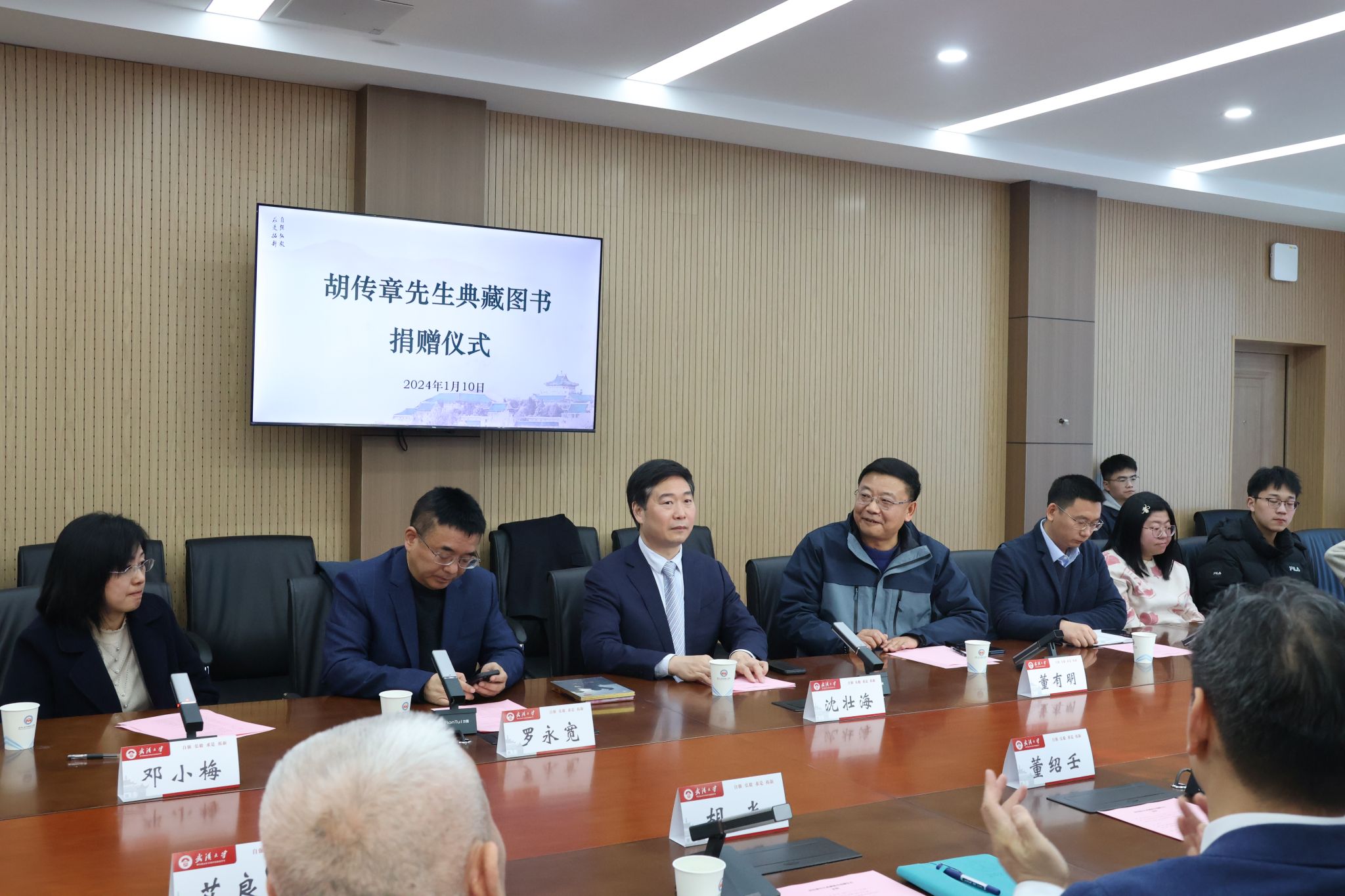 胡光介绍了此次捐赠的基本情况。他感念父亲胡传章先生生前在治学研究方面的深厚造诣,感慨此次捐赠仪式于胡传章先生及家属们的重要意义,希望以此次捐赠为契机和起点,传承胡传章先生未竟的学术事业,把胡传章先生崇高的道德品质和严谨的治学精神发扬光大。