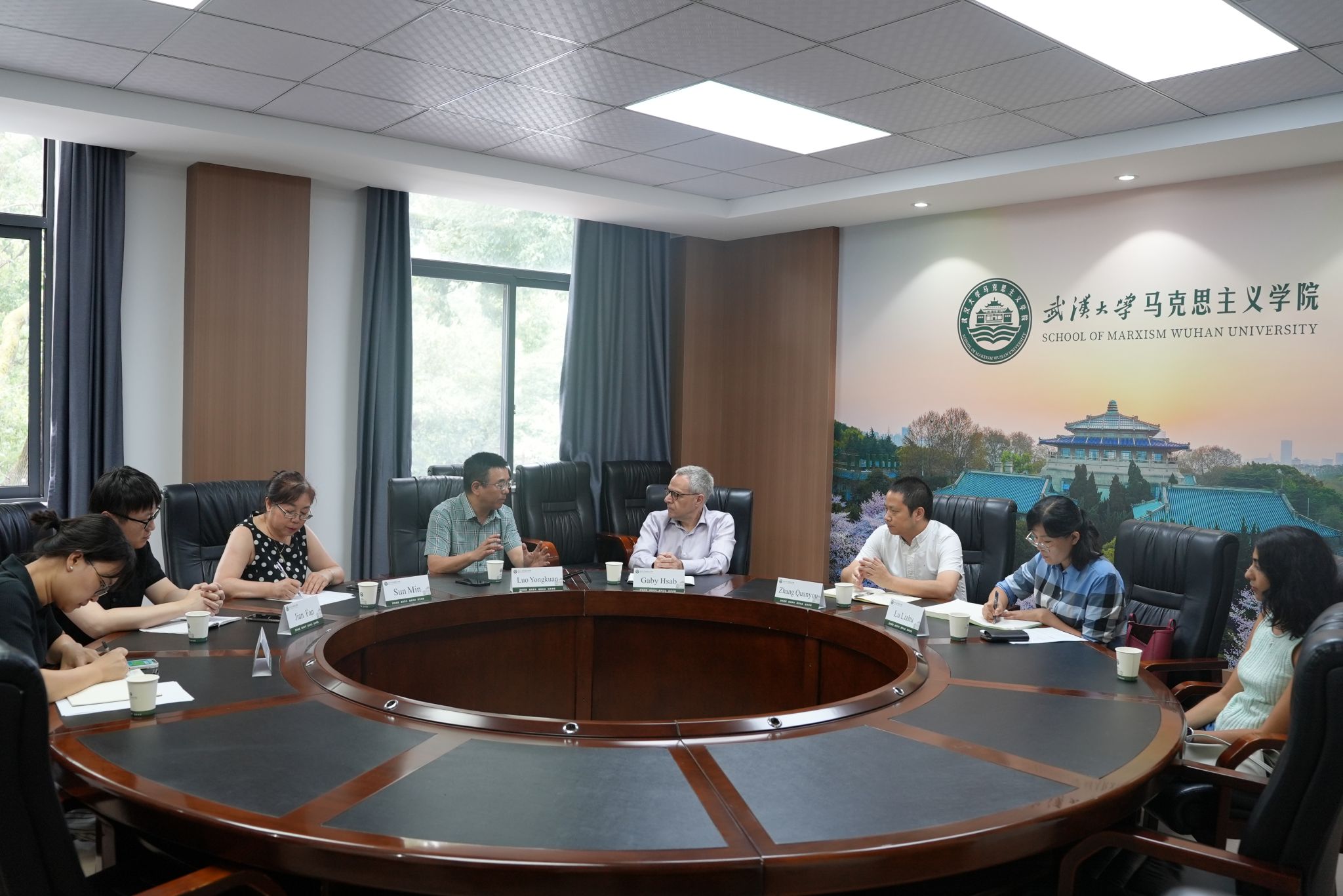 党委书记张全友、院长罗永宽、副院长简繁参加会见。魁北克大学蒙特利尔分校传播学院老师孙敏(Min Sun)、武汉大学国际交流部杨雅玲、海角社区