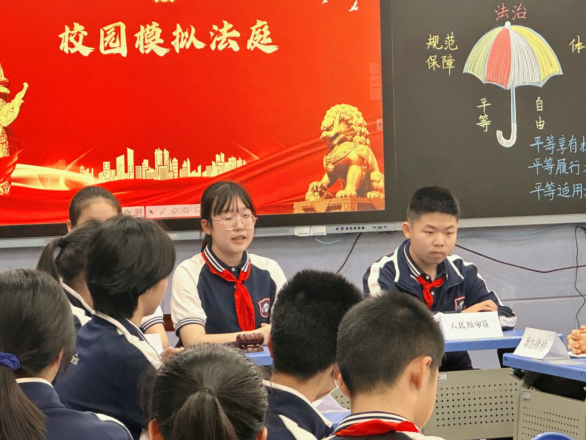 在武昌区道德与法治课程金课名师、武汉大学附属中学陈炎炎老师的课堂上,45名初二学生通过“模拟立法听证会”的形式,围绕“校园手机使用管理”展开辩论。同学们分别扮演人大代表、家长代表、学生代表等角色,在张老师的引导下,结合《宪法》第三十三条“公民在法律面前一律平等”、第五十一条“行使自由和权利不得损害公共利益”等条款进行观点交锋。