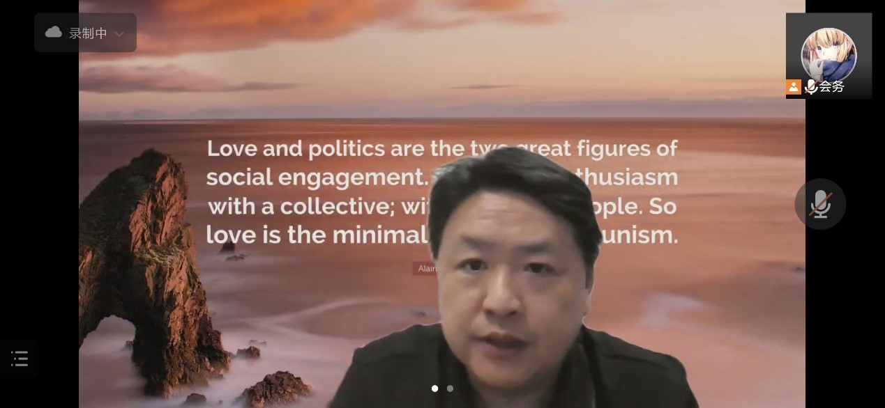 针对对话主题,蓝江教授阐释了巴迪欧的哲学观,尤其是其事件哲学观,其数学本体论和共产主义思想。他首先阐释了巴迪欧的哲学观,他认为拉吕埃勒对巴迪欧存在着误读。当巴迪欧说数学是本体论时,并非说数学凌驾于其他知识之上,而是将数学视为我们用来接近本体的途径,人们可以通过数学的方式来接近本体,或者拉康意义上的the Real。落实到拉吕埃勒那里,人类社会真正的问题在于在语境中的real one如何自己去涌现自己。巴迪欧的看法是,the Real在观念体系上撕开了一道裂缝,让一种事件以突发的不可预料的世界降临在人们身边,而在此基础上建立起了其数学本体论。针对黄其洪教授的阐述,蓝江教授从巴迪欧和拉吕埃勒的语境和概念出发做出了回应。蓝江教授认为,巴迪欧的数学本体论不是一种等级论,数学并非确切的实体,而是表现为一种话语中介。
