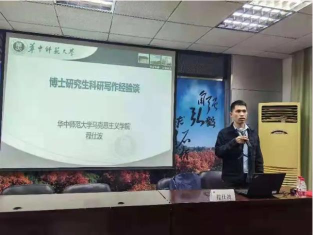 2016级博士院友、首届马院榜样、华中师范大学讲师、硕士生导师程仕波回到母院为在读博士生们分享科研写作经验。分享会由学院博士生辅导员高裕主持,院党委副书记孙燕出席,全体博士生参加了此次分享会。