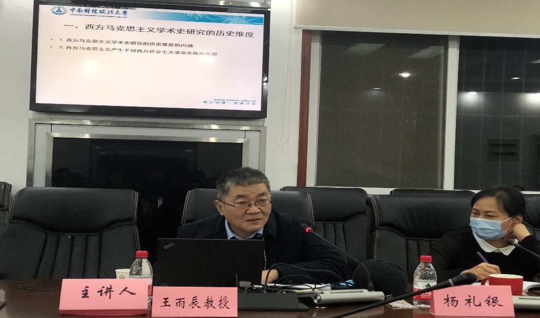 2021年10月27日晚,马克思主义与当代中国论坛之一百五十八讲在学院M218会议室举行。中南财经政法大学哲学学院王雨辰教授应邀作了题为《西方马克思主义学术史研究的四个维度》的讲座,海角社区
