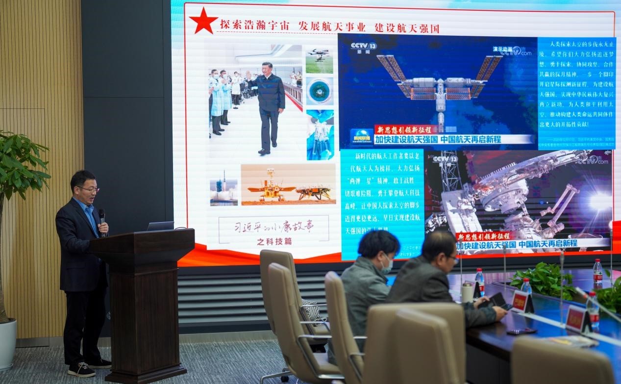 遥感信息工程学院宇航院党支部书记毛庆洲教授作了题为《武大人与航天梦》的主题报告,对宇航院与宇航院党支部成立及发展历程进行了总结,对宇航院研制的“武汉一号”卫星和学生星“启明星”进行了介绍,对宇航院在人工智能框架LuojiaNet、空间光学相机、激光探测、激光雷达方面取得成果进行了汇报,并表示科研强国之路道阻且长,行则将至,行而不辍,未来可期。